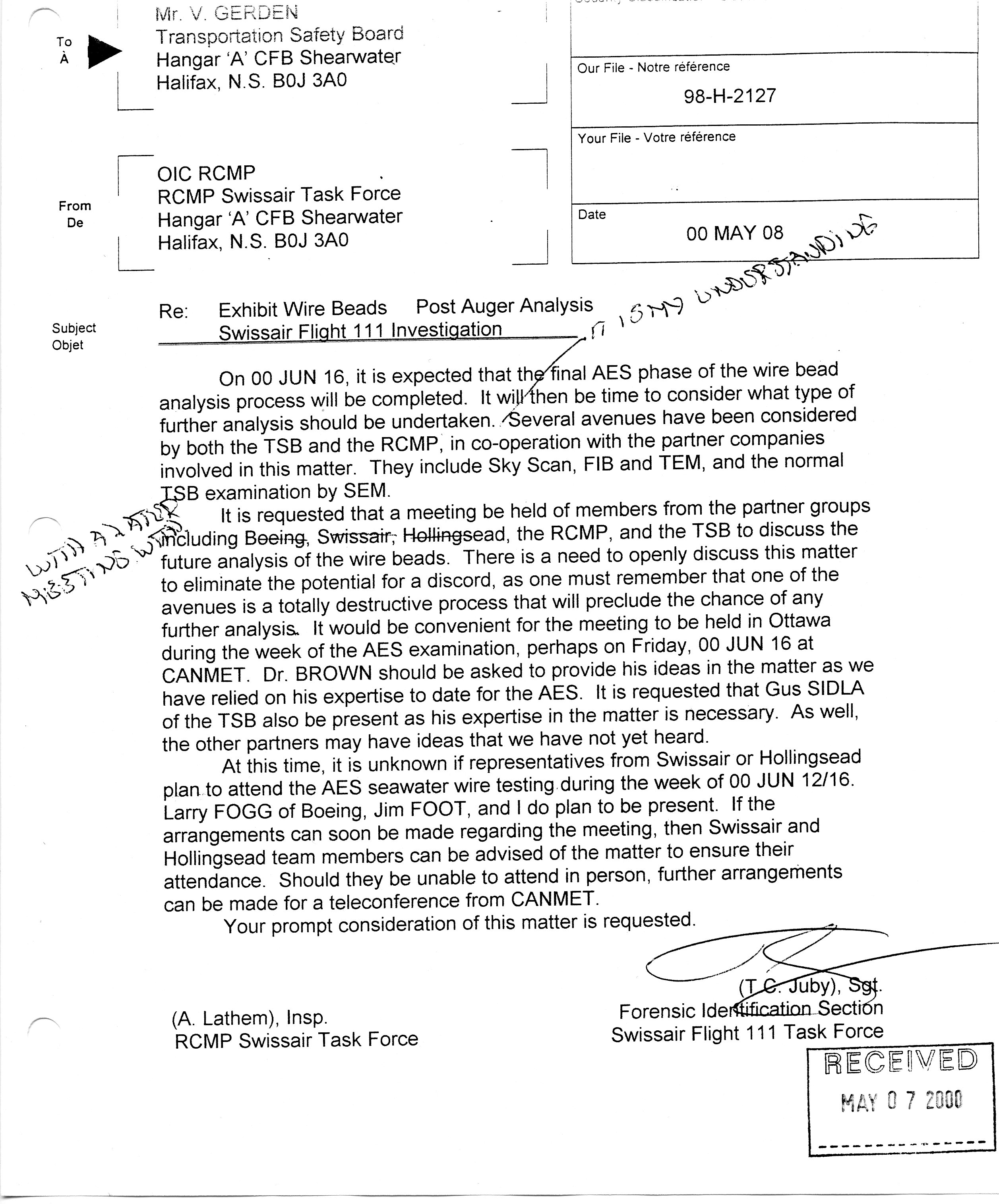 My memo called for a meeting with the TSB